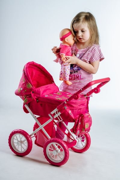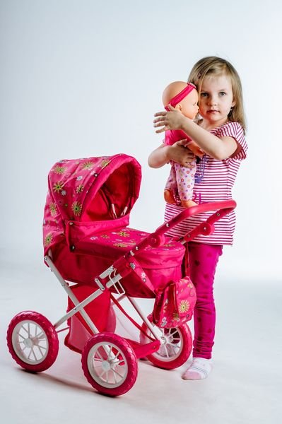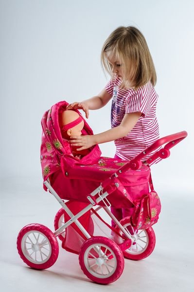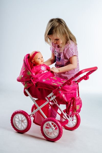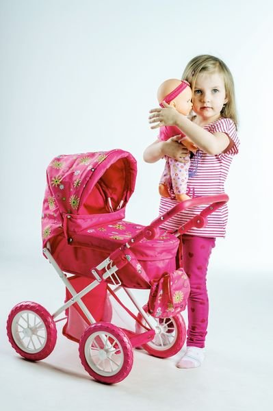 Kočárek pro panenky obsahuje úložný protor vespod kočárku a tašku na nezbytnosti pro malé maminky. Velikost: 58 x 36 x 62,5 cm, v krabici. Vhodný od 3 let.