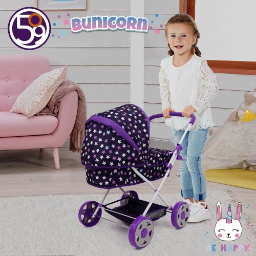 509 Crew Bunnicorn Daisy kočárek pro panenky • Výška rukojeti: cca 56 cm • Vhodné pro panenky do cca 46 cm • Skládací rám kočárku pro snadné skladování • Měkká pěnová rukojeť • Součástí je nákupní košík • S výsuvnou stříškou