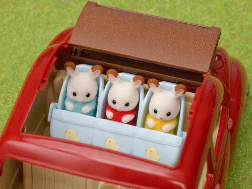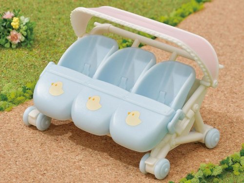 Kočárek pro trojčata je speciálně vytvořen pro 3 malá miminka. Sedadla kočárku snadno přeměníte na trojitou autosedačku, kterou bezpečně vložíte do zadní části auta, aby byli všichni bezpečně usazeni na cestách (auto je prodejné samostatně). Užijte si více zábavy s dalšími figurkami a doplňky Sylvanian Families (prodává se samostatně). Herní sady a figurky Sylvanian Families jsou nadčasové a vysoce kvalitní hračky. Hra podněcuje představivost dítěte. Sada obsahuje: 1x kočárek, 1x stříška, 1x trojsedadlo, 1x nánožník. Věk: 3+