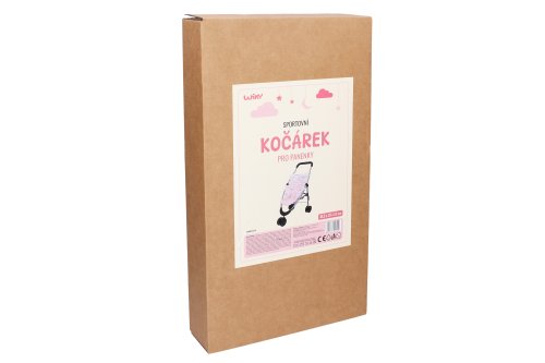 Kočárek sportovní pro panenky. Rozměry sestaveného kočárku 45,5x29x53 cm.