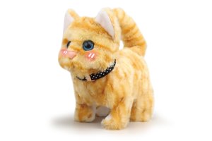 Kočka chodící. Rozměry: 9x16.5x16cm. Kočka chodí, červená se, vrtí ocáskem. světelné a zvukové efekty. Baterie 2xAA nejsou součástí. Vypínač on/off