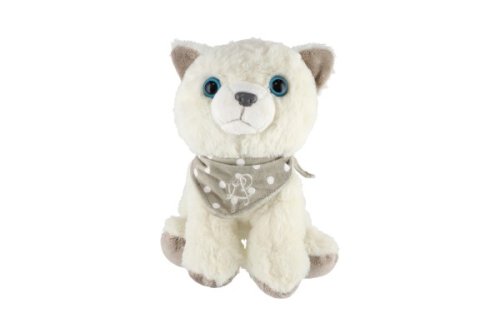 Roztomilá plyšová kočička s měkkou srstí a stylovým šátkem je ideální mazlíček pro malé i velké milovníky zvířátek. Ideální společník na hraní, mazlení i usínání! Velikost: 22 cm Vhodné pro děti od narození