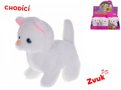 Kočka plyšová 16 cm na baterie chodící se zvukem - mix variant či barev