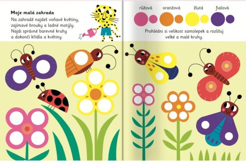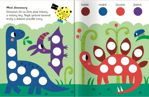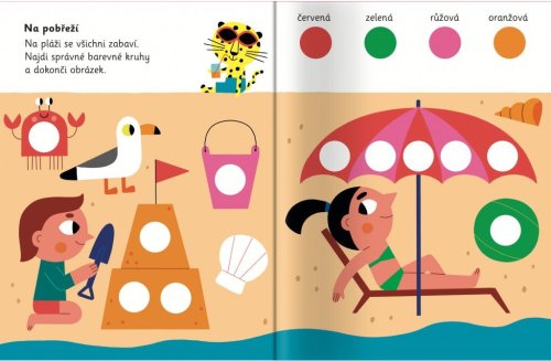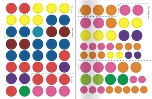 Pracovní sešit se samolepkami kruhů vybízí děti, aby dokončovaly obrázky. Více než 250 samolepek podporuje poznávání barev, představivost a jemnou motoriku. Tato hravá knížka vybízí děti, aby přiřazovaly barevné samolepky kruhů do obrázků. Stranu za stranou jsou obrázky složitější a komplexnější, je potřeba dolepovat více samolepek, které jsou menší či blíže u sebe. Knížka podporuje rozeznávání tvarů a velikostí, poznávání barev, představivost a jemnou motoriku. Obsahuje více než 250 velkých samolepek a menších samolepek kruhů, kterými dokončíš veselé obrázky!