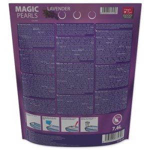 Silikátové stelivo pro kočky s jemnou vůní levandule. Díky mikropórům na sebe stelivo velice rychle váže tekutiny, které uzamkne uvnitř krystalků a eliminuje nepříjemný zápach. Tím zabraňuje množení nebezpečných bakterií. Díky tomuto inovativnímu procesu má stelivo Magic Pearls extrémní savost a udržuje toaletu suchou a čistou. Stelivo Magic Pearls je bezprašné a neulpívá na tlapkách a srsti zvířat, takže není kočkami vynášeno mimo toaletu. Stelivo je vhodné i pro dlouhosrstá plemena koček. Stelivo Magic Pearls v toaletě vydrží absorbovat pachy a vlhkost až 4 týdny (při použití jednou kočkou), proto je jeho použití také velice ekonomické, není třeba jej měnit tak často jako jiné druhy steliv.