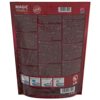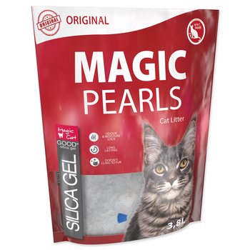 Neparfémované silikátové stelivo pro kočky. Díky mikropórům na sebe stelivo velice rychle váže tekutiny, které uzamkne uvnitř krystalků a eliminuje nepříjemný zápach. Tím zároveň zabraňuje množení nebezpečných bakterií. Díky tomuto inovativnímu procesu má stelivo Magic Pearls extrémní savost a udržuje toaletu suchou a čistou. Stelivo Magic Pearls je bezprašné a neulpívá na tlapkách a srsti zvířat, takže není kočkami vynášeno mimo toaletu. Stelivo je vhodné i pro dlouhosrstá plemena koček. Stelivo Magic Pearls v toaletě vydrží absorbovat pachy a vlhkost až 4 týdny (při použití jednou kočkou), proto je jeho použití také velice ekonomické, není třeba jej měnit tak často jako jiné druhy steliv.