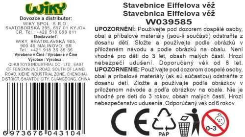 KOCO Stavebnice Eiffelova věž 538 dílků. Rozměry 12x8x21 cm. Součástí 2 figurky. Obrázkový návod na sestavení součástí.