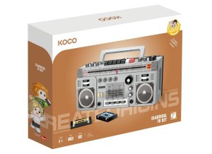 KOCO Stavebnice Kazetový přehrávač 1982 dílků. Rozměry 18,5x7,5x14,5 cm. Součástí 2 figurky. Obrázkový návod na sestavení součástí.