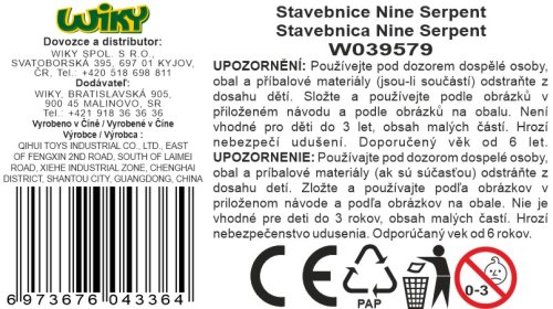 KOCO Stavebnice Nine Serpent 300 dílků. Rozměry 12x3x9 cm. Obrázkový návod na sestavení součástí.