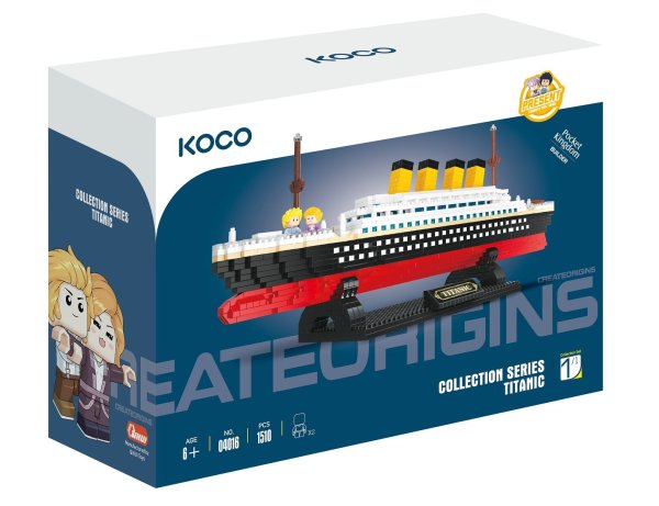 KOCO Stavebnice Titanic 1510 dílků. Rozměry 35x8x14,5 cm. Součástí 2 figurky, stojánek. Obrázkový návod na sestavení součástí.