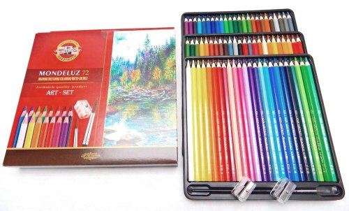 Souprava 72 kusů šestihranných akvarelových pastelek KOH-I-NOOR Mondeluz potěší každého malého umělce i školáka. Pastelky vynikají světlostálostí, čistotou barev a širokou barevnou škálou. Při aplikaci vody pomocí štětce lze jejich stopu zcela rozmalovat a následně aplikovat techniku akvarelové kresby. Balení obasahuje: 72 pastelek, 3 štětce a 2 ořezávátka. Průměr tuhy: 3,8 mm Průměr pastelky: 7 mm Délka pastelky: cca 17,5 cm.