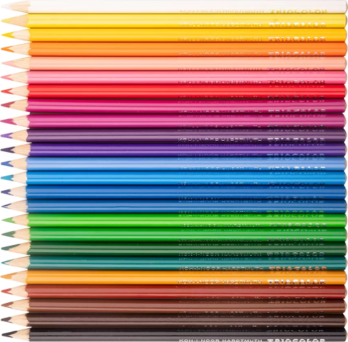 tyto pastelky se vyznačuji odolností, pěknou barevnou škálou, dlouhou životností, dobře se ořezávají a mají nelámavou tuhu trojhranné pastelky TRIOCOLOR jsou vyrobené z cedrového dřeva délka pastelky: 17,5 cm