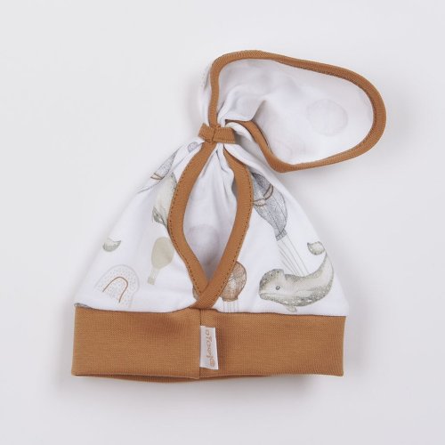 Krásná bavlněná kojenecká čepička-šátek Nicol Miki. Čepička je ušitá ve stylu šátku s pružným lemem s potiskem. Díky příjemnému a kvalitnímu materiálu se miminko bude cítit velmi příjemně a pohodlně. Složení: 100% bavlna.