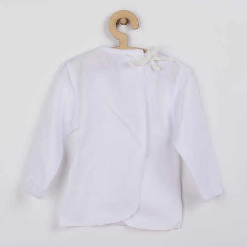 Kojenecká tenká bavlněná košilka. Košilka je bílá se zavazováním vzadu na tkaničky. Složení 100% bavlna. Rozměr: délka od ramínek cca 29 cm, obvod hrudníků cca 42 cm, délka rukávu cca 24 cm.