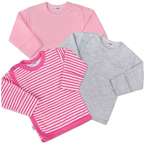 Klasická kojenecká košilka New Baby Classic II Holka. Košilka se zapíná na cvočky na ramínku a boční straně. Rukávky košilky lze ohrnout. Košilka je vyrobená z příjemného, měkkého a kvalitního materiálu, ve kterém se miminko bude cítit velmi pohodlně. Cenově výhodné balení obsahuje 3 ks - 1x košilka růžová , 1x - košilka s pruhy, 1x košilka šedá. Složení: 100% bavlna.