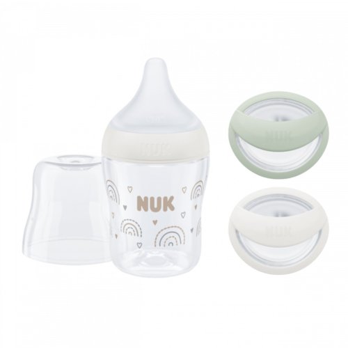 - 1× kojenecká láhev NUK Perfect Match s patentovaným indikátorem kontroly teploty, objem 150 ml, velikost S (od 0 měsíců pro mateřské mléko), lze kombinovat se všemi doplňky odsávaček NUK Perfect Match a NUK Soft&Easy