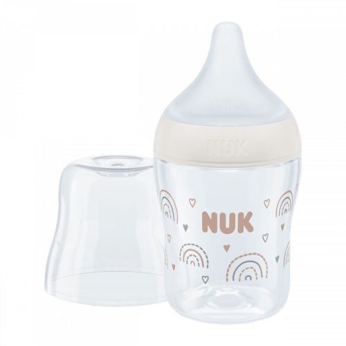 Kojenecká láhev NUK Perfect Match s kontrolou teploty a měkkou silikonovou savičkou. Speciální tvar typický pro savičky NUK s ortodontickou antikolikovou savičkou je modelován podle mateřské bradavky při kojení. Ponechává dostatek prostoru pro přirozené sací pohyby jazyka i čelisti. Velká, široká opora rtů při pití připomíná matčinu pokožku. Lahvička je navržena tak, aby miminko nepřišlo do kontaktu s pevnými plastovými částmi. Vylepšený systém proti polykání vzduchu při pití Anti Colic Air System zajišťuje přirozený tok mléka, aby dítě pilo uvolněně bez polykání vzduchu. Hladce se zužující tvar s antikolikovou funkcí pro plynulý a nerušený průtok pití, velikost S (od narození, pro mateřské mléko, čaj nebo vodu). Kojenecké láhve jsou nyní vybaveny novou NUK kontrolkou teploty a pomáhají tak zabránit tomu, aby vaše dítě pilo příliš horký příkrm. Kontrolka vypadá jako teploměr, je umístěna mezi ryskami a teplota obsahu láhve změní její barvu. Pokud je příkrm příliš horký, modrá kontrolka se změní na bílou. V ideálním případě by měl příkrm mít tělesnou teplotu (37 °C), což odpovídá modrému zabarvení displeje. Vyrobena z vysoce kvalitního nerozbitného plastu polypropylenu a neobsahuje BPA (Bisfenol A). Obsah láhve 150 ml. Vhodná pro děti od narození, S (malý otvor = pro mateřské mléko, vodu, čaj). Klinicky testováno.<BR>Charekteristika:<BR>- praktický displej NUK kontroly teploty, který změní teplotu z modré (studené) na<BR>bílou (příliš horké)<BR>- trvale hygienická láhev se vzhledem vysoce kvalitního plastu, příjemná na dotek<BR>- bez škodlivých látek a zápachu – neobsahuje BPA<BR>- bezpečné uchopení a stabilita – díky jemně vytvarované láhvi a široké základně<BR>- neomezený počet kombinací – lze kombinovat s veškerým příslušenstvím odsávaček mateřského mléka NUK Perfect Match a NUK Soft&Easy-nekapající-díky víčku láhev neteče a savička je chráněna před znečištěním. Kojenecké láhve jsou v souladu s evropskou normou EN14350.