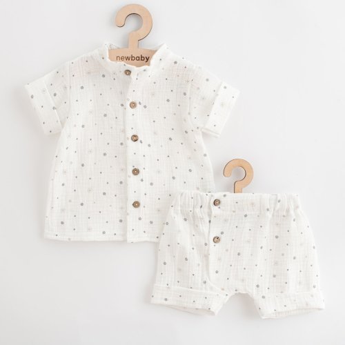 Stylová 2-dílná mušelínová soupravička české značky New Baby Arthur pro miminka. Soupravička obsahuje košili a kraťasy. Košile s krátkým rukávem má zapínání na knoflíčky. Šmrncovní kraťásky mají v pase širší gumičku a falešné zapínání na knoflíčky. Krásný, vzdušní komplet na letní dny pro chlapečky. Soupravička je lehounká a velmi příjemná při nošení. Mušelín je jedna z nejčistších, nejjednodušších a nejjemnějších tkanin na světě. Jemně tkaný prodyšný materiál je tak dokonalý, že si jej zamilují děti po celém světě. Lehká struktura umožňuje mušelínu „dýchat“ a zajišťuje dostatečnou cirkulaci vzduchu, čímž snižuje riziko přehřátí. Tato vlastnost pomáhá udržet Vaše dítě v pohodlí, bezpečí a rodiče v klidu. Mušelín je velmi odolný a to tak, že bez problémů zvládá opakované praní a postupem času je lehčí a jemnější. Složení: 100% bavlna. OEKO-TEX STANDARD 100.