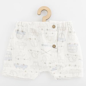 Stylová 2-dílná mušelínová soupravička české značky New Baby My Cars pro miminka. Soupravička obsahuje košili a kraťasy. Košile s krátkým rukávem má zapínání na knoflíčky. Šmrncovní kraťásky mají v pase širší gumičku a falešné zapínání na knoflíčky. Krásný, vzdušní komplet na letní dny pro chlapečky. Soupravička je lehounká a velmi příjemná při nošení. Mušelín je jedna z nejčistších, nejjednodušších a nejjemnějších tkanin na světě. Jemně tkaný prodyšný materiál je tak dokonalý, že si jej zamilují děti po celém světě. Lehká struktura umožňuje mušelínu „dýchat“ a zajišťuje dostatečnou cirkulaci vzduchu, čímž snižuje riziko přehřátí. Tato vlastnost pomáhá udržet Vaše dítě v pohodlí, bezpečí a rodiče v klidu. Mušelín je velmi odolný a to tak, že bez problémů zvládá opakované praní a postupem času je lehčí a jemnější. Složení: 100% bavlna. OEKO-TEX STANDARD 100.