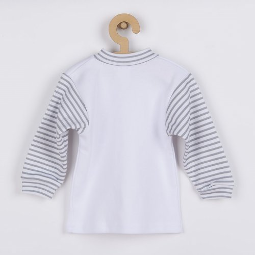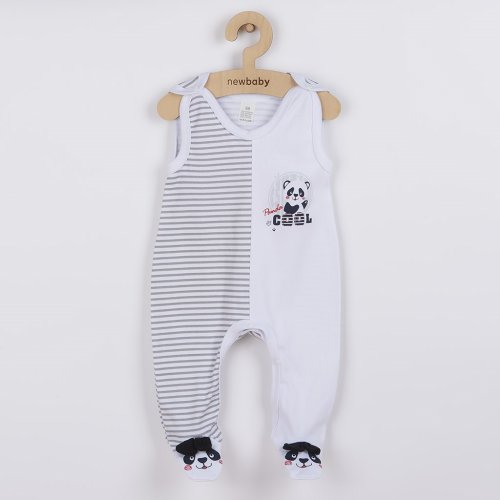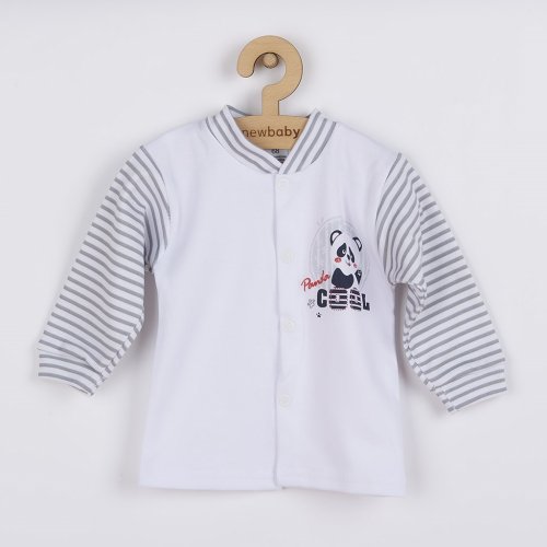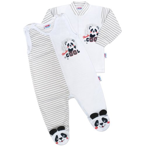 Bavlněná kojenecká souprava New Baby Panda pro miminka. Soupravička obsahuje dupačky a kabátek. Dupačky jsou proužkované a zdobené obrázkem pandy a nápisem COOL. Na tlapkách je hlavička pandy a 3D ouška. Praktické zapínání na cvočky na ramínku a mezi nožičkami. Kabátek má rukávky a stojáček celopotištěný moderními pruhy a přední strana je zdobena obrázkem pandy a nápisem COOL. Praktické zapínání na cvočky po celé délce. Souprava s moderním designem je vhodná pro holčičky i chlapečky. Složení: 100% bavlna.