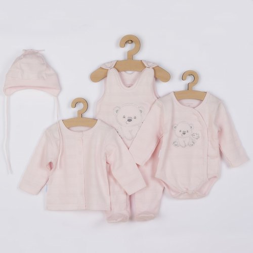 4-dílná soupravička české značky New Baby Sweet Bear pro miminka. Soupravička je vyrobena z kvalitního materiálu, který je vhodný pro miminka a je vhodná nejen do porodnice. Obsahuje celorozepínací body s dlouhým rukávkem, dupačky, kabátek a čepičku. Celorozepínací body zdobí vyšitý obrázek medvídka a ptáčka. Dupačky zdobí roztomilý obrázek medvídka a ptáčka. Zapínání na cvočky na ramínkách a mezi nožičkami. Kabátek je jednobarevný s krásným lemováním okolo ručiček. Zapínání je na cvočky po celé délce. Čepička je krásně tvarovaná na ouška a zavazuje se na tkaničky. Soupravička je v praktické Eko krabičce. Celá soupravička má nový neobyčejný design s atraktivním vzorem látky. Složení: 100% bavlna.