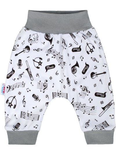 Bavlněné kojenecké polodupačky New Baby Music pro miminka. Polodupačky jsou jednobarevné s origínálním potiskem notiček a hudebních nástrojů. Mají široký lem, který netlačí na bříško miminka. Zapínání mezi nožičkami na cvočky. Náše originální a zároveň veselé polodupačky jsou vhodné pro kluky i holčičky. Složení: 100% bavlna. Rozměr: obvod kolem pasu cca 27 cm, obvod přes boky cca 46 cm, délka od pasu cca 27 cm, délka od rozkroku cca 11 cm.