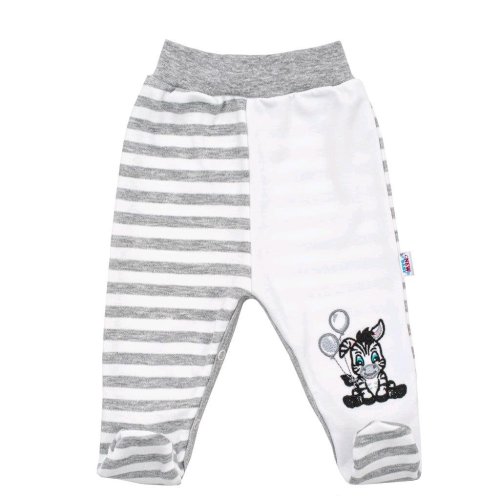 Bavlněné polodupačky české značky New Baby Zebra exclusive pro miminka. Polodupačky jsou zdobeny vyšitým obrázkem roztomilé zebry, který je podlepený látkou a moderními pruhy. V pase mají široký pružný lem. Zapínání na cvočky mezi nožičkami. Složení: 100% bavlna.