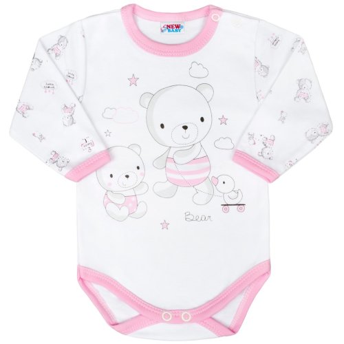Kojenecké body s dlouhým rukávem New Baby Bears. Dětské body má rukávky celopotištěné medvídkami a přední strana je zdobena obrázkem medvídka a nápisem. Zapínání na cvočky na ramínku a mezi nožičkami. Složení: 100% bavlna.