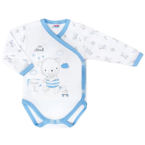 Kojenecké body s bočním zapínáním New Baby Bears. Dětské body má rukávky celopotištěné medvídkami a přední strana je zdobena obrázkem medvídka a nápisem. Zapínání na cvočky po celé délce a mezi nožičkami. Složení: 100% bavlna.