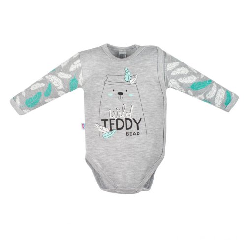 Bavlněné kojenecké body s bočním zapínáním české značky New Baby Wild Teddy pro miminka. Dětské body má rukávky potištěné krásnými pírky, které jsou bezpochyby trendy. Přední strana body je zdobena roztomilým medvídkem a nápisem wild Teddy Bear. Praktické boční zapínání na cvočky po celé délce a mezi nožičkami velmi usnadní oblékání a přebalování. Složení: 100% bavlna.