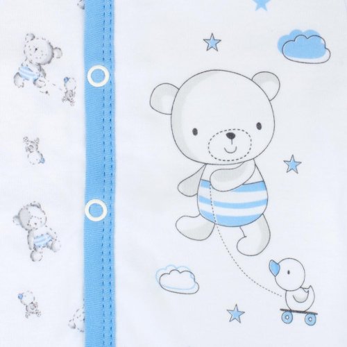 Kojenecké celorozepínací body New Baby Bears. Dětské body je zdobené obrázkem medvídka. Zapínání na cvočky po celé délce a mezi nožičkami. Složení: 100% bavlna.