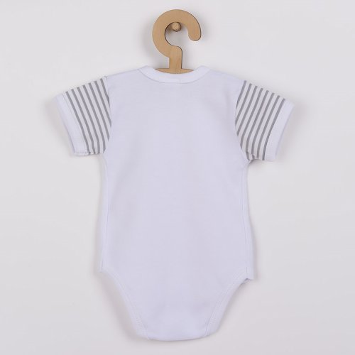 Bavlněné celorozepínací kojenecké body s krátkým rukávem New Baby Panda pro miminka. Dětské body má rukávky celopotištěné moderními pruhy a přední strana je zdobena obrázkem pohádkové pandy a nápisem COOL. Praktické zapínání na cvočky po celé délce a mezi nožičkami velmi usnadní oblékání a přebalování. Body s moderním designem je vhodné pro holčičky i chlapečky. Složení: 100% bavlna.
