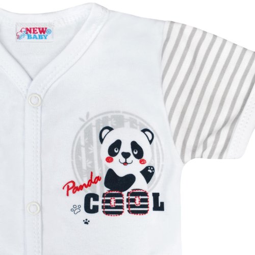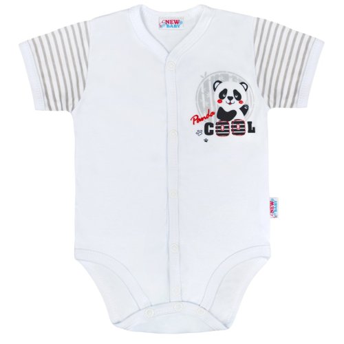 Bavlněné celorozepínací kojenecké body s krátkým rukávem New Baby Panda pro miminka. Dětské body má rukávky celopotištěné moderními pruhy a přední strana je zdobena obrázkem pohádkové pandy a nápisem COOL. Praktické zapínání na cvočky po celé délce a mezi nožičkami velmi usnadní oblékání a přebalování. Body s moderním designem je vhodné pro holčičky i chlapečky. Složení: 100% bavlna.