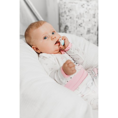 Kojenecké polodupačky New Baby Bears. Polodupačky jsou zdobené medvídkami. V pase mají široký a pružný lem, který netlačí na bříško miminka. Složení: 100% bavlna.