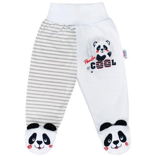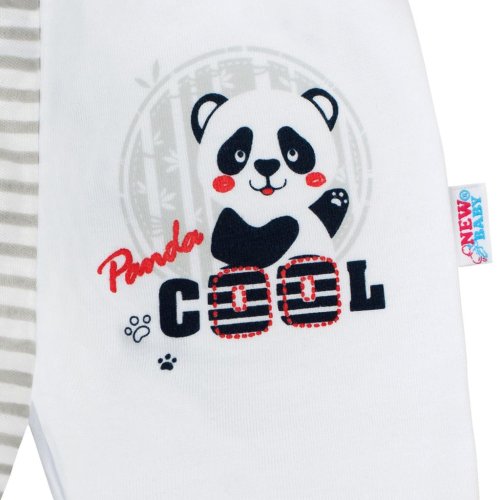 Bavlněné kojenecké polodupačky New Baby Panda pro miminka. Polodupačky jsou proužkované a zdobené obrázkem pandy a nápisem COOL. Na tlapkách je hlavička pandy a 3D ouška. V pase mají široký pružný lem. Polodupačky s moderním designem jsou vhodné pro holčičky i chlapečky. Složení: 100% bavlna.