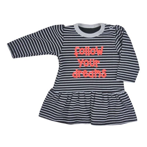 Kojenecké šatičky Koala Jezevec. Šatičky s dlouhým rukávem jsou zdobeny stále moderními pruhy a nápisem. Praktické zapínání na cvočky na ramínku velmi usnadní oblékání a přebalování. Materiál: 100% bavlna.