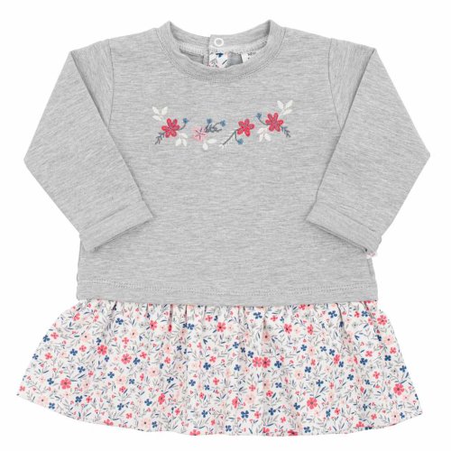 Kojenecké šatičky s dlouhým rukávem české značky New Baby For Girls. Šatičky jsou vhodné na jarní i podzimní období, díky příjemné hrubší vrchní části šatiček. Jsou zdobeny krásnou výšivkou a nařaseným volánkem, který je celopotištěným květinkami. Volánek je ušitý s dvojité látky. Podél celého zapínání na zádičkách je krásný květinkový lem. Moderní střih, květinky, nařasená sukýnka, krásné barvy a neodmyslitelná součást holčičího oblečení. Složení: 89% bavlna, 8% polyester, 3% elastan, volánek: 100% bavlna.