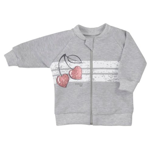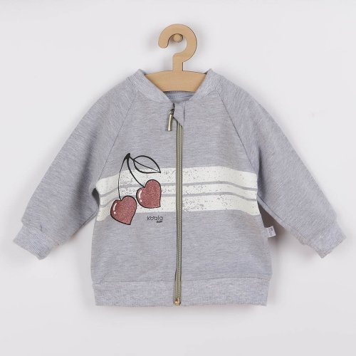 Stylová a praktická dětská 2-dílná soupravička Koala Cherry. Součástí soupravičky jsou tepláčky a mikinka. Mikinka je zdobena třpytivým obrázkem třešniček, má zapínání na zip po celé délce, pružný lem v pase a na rukávcích. Zip je u krčku zakrytý, což je velmi praktické a pohodlné. Tepláčky mají v pase a na nohavičkách širší pružný lem. Soupravička je vyrobena z velmi kvalitního a příjemného materiálu, ve kterém se bude vaše miminko cítit velmi pohodlně. Materiál: 96% bavlna, 4% elastan.