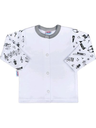 Bavlněný kojenecký kabátek New Baby Music pro miminka. Kabátek je jednobarevný a rukávky jsou celopotištěné notičkami a hudebními nástroji. Zapínání na cvočky po celé délce. Náš hravý kabátek je vhodný pro kluky i holčičky. Složení: 100% bavlna. Rozměry: obvod kolem hrudníku cca 44 cm, délka rukávu cca 20 cm, celková délka cca 28 cm.