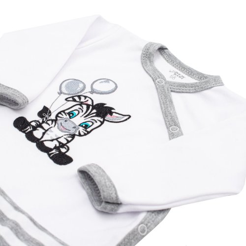 Bavlněný overal s bočním zapínáním české značky New Baby Zebra exclusive pro miminka. Overálek je zdoben vyšitým obrázkem roztomilé zebry a spodní část je celopotištena pruhy. Obrázek je podšitý látkou. Boční zapínání na cvočky po celé délce a mezi nožičkami. Pro miminka je důležitým kouskem oblečení a při jakémkoliv pohybu jsou zádička miminka stále přikrytá. Složení: 100% bavlna.