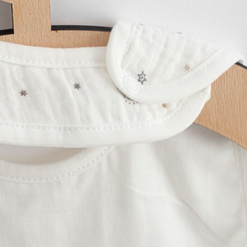 Krásný mušelínový dětský bryndáček české značky New Baby Arthur. Bryndák lze zapnout do 2 velikostí pomocí cvočků. Mušelín je jedna z nejčistších, nejjednodušších a nejjemnějších tkanin na světě. Jemně tkaný prodyšný materiál je tak dokonalý, že si jej zamilují děti po celém světě. Lehká struktura umožňuje mušelínu „dýchat“ a zajišťuje dostatečnou cirkulaci vzduchu, čímž snižuje riziko přehřátí. Tato vlastnost pomáhá udržet Vaše dítě v pohodlí, bezpečí a rodiče v klidu. Mušelín je velmi odolný a to tak, že bez problémů zvládá opakované praní a postupem času je lehčí a jemnější. Rozměr: 25x30 cm. Složení: 100% bavlna. OEKO-TEX STANDARD 100.