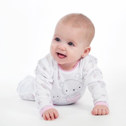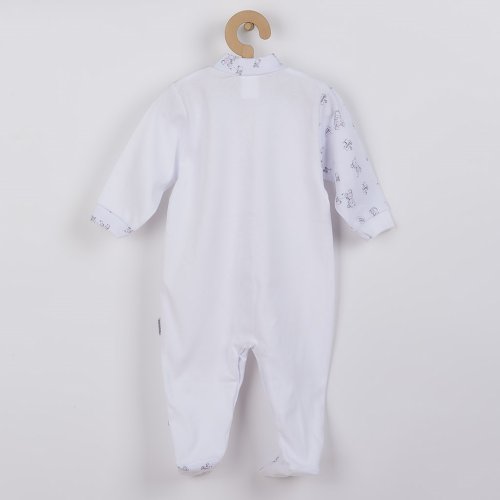 Kojenecký overal s dlouhým rukávem New Baby Bears. Overal je celopotištěný medvídkami a přední strana je zdobena obrázkem medvídka. Zapínání na cvočky po celé délce a mezi nožičkami. Složení: 100% bavlna.