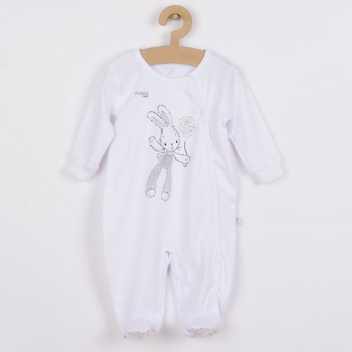 Bavlněný kojenecký overálek s čepičkou Koala Rabbit. Overálek má moderní boční zapínání na cvočky po celé délce a mezi nožičkami. Je vhodný pro miminka už od narození pro svou jemnost a měkkost. Overal je zdoben veselým králíčkem. Čepička se zavazováním na tkaničky krásně kryje ouška a je celopotištěná hvězdičkami. Soupravička s moderním designem je vhodná pro holčičky i chlapečky. Složení: 100% bavlna.