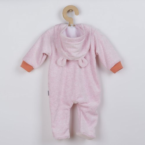 Praktický semiškový kojenecký overal s kapucí české značky New Baby Sweetheart. Overal s roztomilým obrázkem medvídka je vyrobený z kvalitního materiálu, který zaručí vašemu miminku teplo a pohodlí. Je velmi precizně ušitý a celý podšitý bavlněnou podšívkou. Podšívka je důležitou součástí oděvů, je hladká, prodyšná, příjemná na dotek a zároveň zvýší komfort nošení. Zapínání na zip po celé délce. Složení: 80% bavlna, 20% polyester, podšívka: 100% bavlna.
