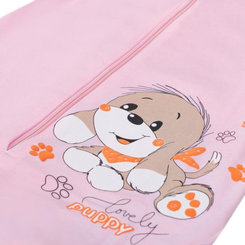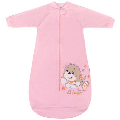 Bavlněný kojenecký spací pytel New Baby pro miminka v krásné pastelové barvě s veselým obrázkem pejska. Spací pytel je vhodný pro miminka už od narození pro svou jemnost a měkkost. Praktické zapínání na zip po celé délce. Složení: 100% bavlna.