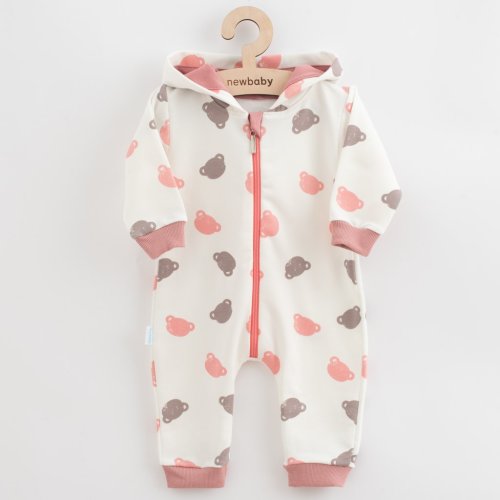 Roztomilý a praktický overal s kapucí české značky New Baby Little One. Overálek je celopotištěný medvídky, má zapínání na zip po celé délce a pružné lemy na rukávcích a nohavičkách. Kapuce je podšitá barevnou podšívkou a je zdobena roztomilou bambulkou. Overal je vyroben z pohodlné teplákoviny. Vhodný pro celoroční nošení. Materiál: 96% bavlna, 4% elastan.