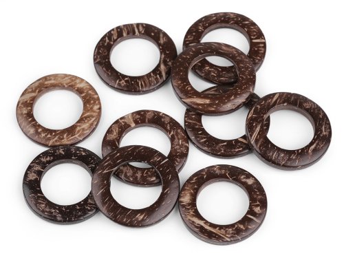 Kokosové kroužky využijete k výrobě uch na kabelky a tašky, k ozdobení kabelek i na výrobu macramé dekorací či pásků. Jelikož se jedná o přírodní materiál, mají kroužky různou tloušťku.