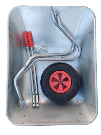 *korba plechová pozinkovaná - objem 65 litrů; *rozměr korby 815x610x215mm - síla plechu 0,6 mm; *kolo nafukovací na plastovém disku 13“x3.50-6 *rozměr balení: 820x620x220mm *celkové rozměry: 1305x610x620mm *hmotnost 6,4 kg *dodáváno v kartonu v nesmontovaném stavu *snadná kompletace