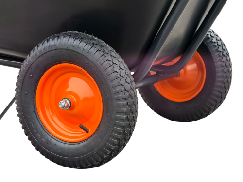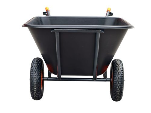 Objem: 210l Barva: černá Kolo: 2x nafukovací Korba: plastová Rozměr kolečka: 1530x920x790 Rozměr korby: 1100x920x300-810 Průměr kola: 390 Výška rukojetí nad zemí: 630 Nosnost: 100 kg