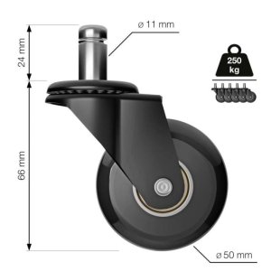 prémiová kolečka pro kancelářské židle pro všechny podlahy – polyuretanový povrch je šetrný k dřevu, dlažbě, laminátu i kobercům dlouhá životnost – odolné materiály zajišťují roky plynulého pohybu tichý …